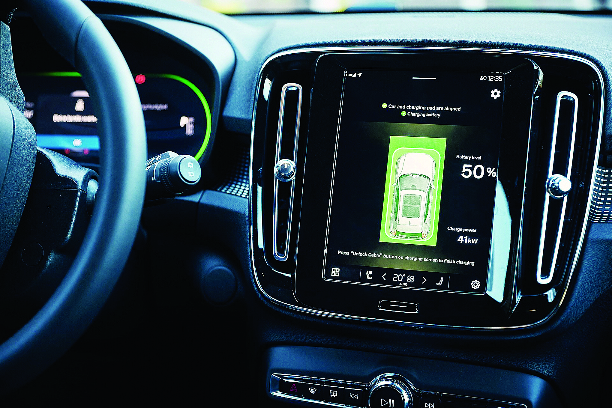 Tam elektrikli XC40 Recharge otomobiler için kablosuz şarj gücü 40 kW’ın üzerinde olacak. Böylece şarj hızı, kablolu 11 kW AC şarj cihazından yaklaşık dört kat hızlı ve kablolu 50 kW DC hızlı şarj cihazıyla neredeyse aynı olacak
