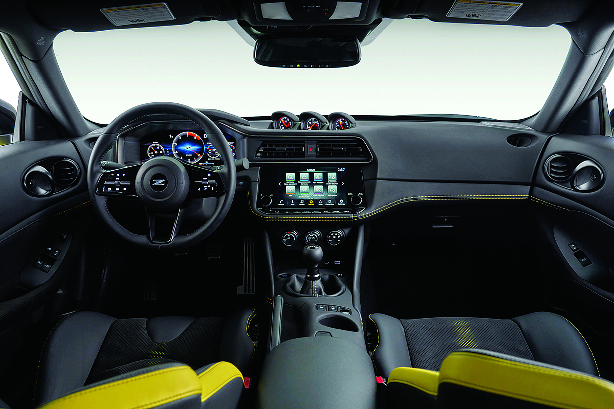Orta konsolu, üçlü analog göstergesi, 8.0 inç dokunmatik ses ekranı ve vites kolunun yanındaki klima kontrol düğmeleri önceki nesil Z iç mekan tasarımından esinleniliyor.